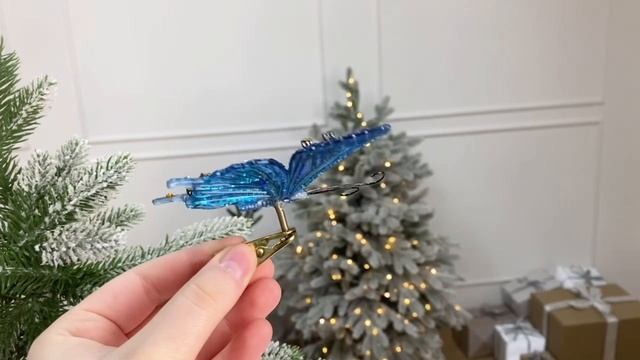Ёлочная игрушка БАБОЧКА - ГРЁЗА ПАВЛИНА на клипсе, пластик, синяя, 8 см, T3106-2