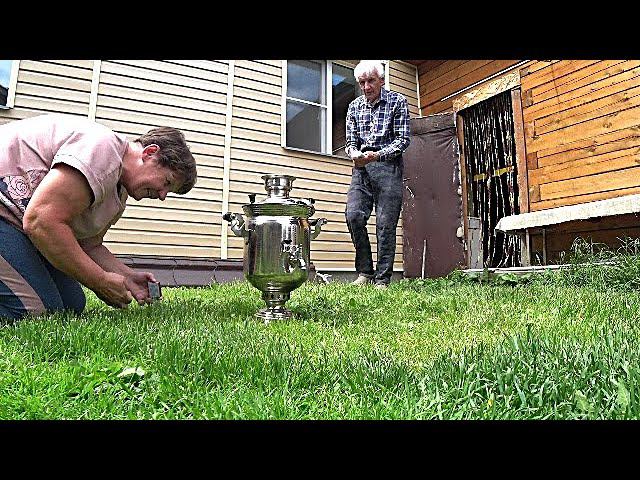 Топим самовар дровами. Открыли дачный сезон у родителей)))