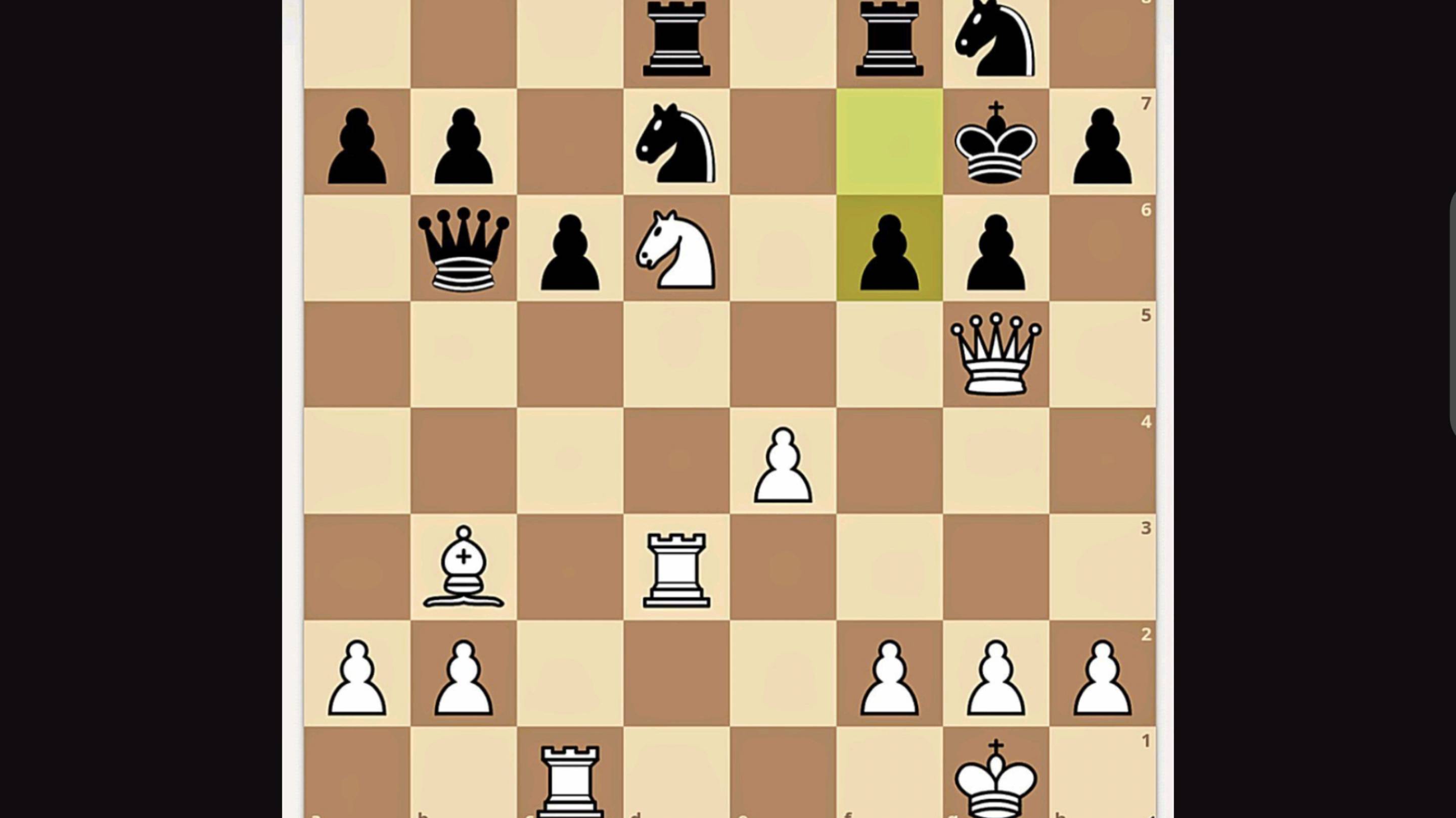 Мат в шесть ходов. Выигрышная позиция. Белые начинают и ставят мат противнику за шесть ходов. (Вариант продолжения шахматной партии Александр Алехин — Эмануил Ласкер. Цюрих, 1934). Checkmate in six moves. White to move and deliver checkmate to the opponent in six moves. Checkmate in six moves. Winning position. White to move and deliver checkmate to the opponent in six moves. (Variation from the chess game Alexander Alekhine — Emanuel Lasker, Zurich 1934). [Event "casual correspondence game"] [Site "https://lichess.org/7nttKDpl"] [Date "2025.07.25"] [White "_"] [Black "lichess AI level 8"] [Result "1-0"] [WhiteElo "1500"] [TimeControl "-"] [Variant "From Position"] [Termination "Normal"] [GameId "7nttKDpl"] [ECO "?"] [Opening "?"] [StudyName "Game study"] [FEN "3r1rn1/pp1n2kp/1qpN1pp1/6Q1/4P3/1B1R4/PP3PPP/2R3K1 w - - 0 25"] [SetUp "1"] [ChapterURL "https://lichess.org/study/8jt0WesK/iOd8sajW"] 25. Nf5+ Kh8 26. Qxg6 Qxf2+ 27. Kxf2 Rf7 28. Bxf7 hxg6 29. Rh3+ Nh6 30. Rxh6# { 1-0 White wins by checkmate. } 1-0