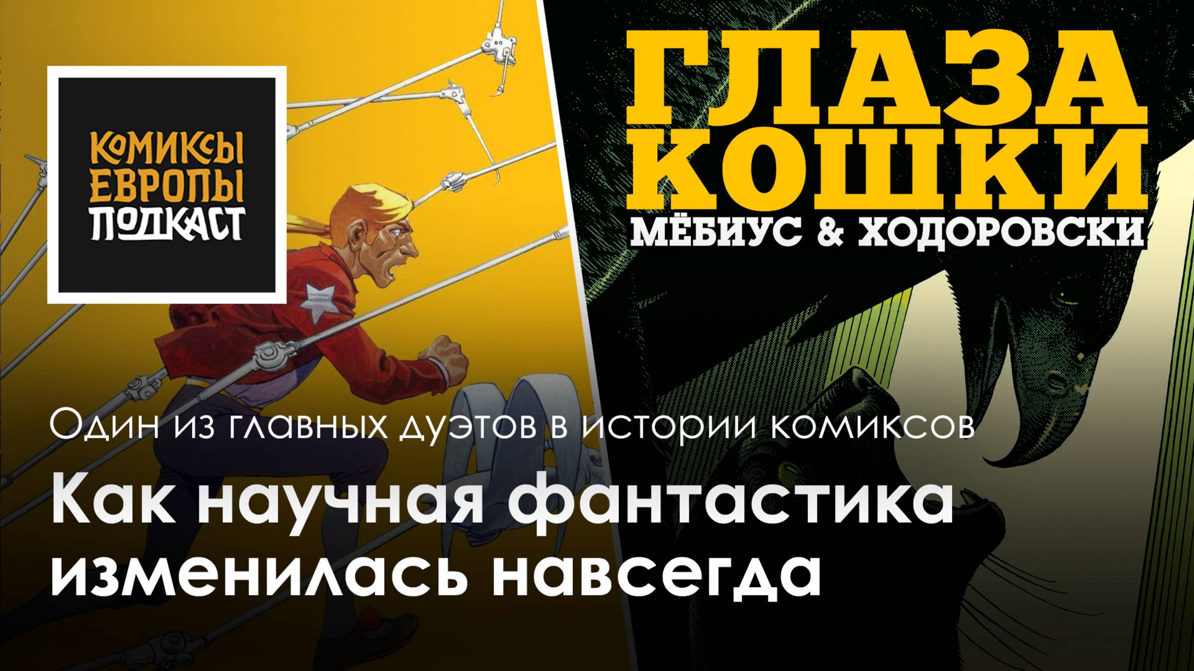 В 1974 году Жан Жиро – настоящее имя Мёбиуса – вместе с режиссером Алехандро Ходоровски приступил к созданию фильма «Дюна». Но проекту не суждено было выйти на экраны. Алехандро впал в глубокую депрессию и на этом фоне начал писать сюжет графического романа, к которому Жан Жиро создал потрясающие иллюстрации. Так на свет появились «Глаза кошки». Альбом стал началом плодотворного сотрудничества Мёбиуса и Ходоровски. Эту работу вместе с «Инкалом» и другие рисованные истории дуэта Жиро и Ходо обсуждаем с Михаилом Хачатуровым, переводчиком, написавшим послесловие к русскоязычному изданию комикса «Глаза кошки»! 0:00 - Вступление 1:10 - О расхождениях карьеры Жана Жиро и «Мёбиуса» 2:15 - Про восприятие комикса «Глаза кошки» читателями в России и за рубежом 4:49 - О предисловии Ходоровски к альбому «Глаза кошки»: «Дюна» и знакомство с Мёбиусом 6:25 - О музыке в творчестве и судьбе Ходо и Мёбиуса 8:28 - Про комиксы без слов и графическом построении рисованных историй в целом 10:18 - О том, как «Мёбиус» на несколько лет оставил карьеру «Жана Жиро» ради фантастики (и «переключении» личностей) 15:07 - Об «Арзаке», над которым Мёбиус работал параллельно с «дюной» 15:45 - О «Металь Урлан», издательстве «Les Humanoïdes Associés» работе Мёбиуса в нём и о том, как появились «Глаза кошки» 18:01 - Обсуждаем вбоквелы к «Инкалю» и Ходоверсум в целом 19:32 - О том, как появился «Инкал» 20:38 - «Глаза кошки» и шикарная обложка издания от «Азбуки» 21:15 - «Инкал»: приключения Джона Дифула. О построении цикла 22:42 - О том, сколько всего Ходоровски и Мёбиус зашили в «Инкал» 26:15 - Про перекраску «Инкаля» (издание, ставшее букинистической редкостью) 26:57 - Джон Дифул как персонаж (и сравнение с Алкидом Никополем Энки Билаля) 29:22 - О персонажах, окружающих Джона Дифула 31:12 - Лайфхак! О том, как лучше понять «Инкал» 31:52 - Heavy Metal, анимационная полнометражка! И о том, с чем вообще сравнивают «Инкал» 32:58 - Инкал – «здесь не странного нет вообще ничего!» 33:51 - Как Жан Жиро жил какое-то время в Мексике! 34:45 - Что мастрид из Ходоверсума? 36:04 - О других совместных комиксах Ходо и Мёбиуса: странная серия «Увенчанное сердце» и небольшой уаншот 37:07 - Как Ходо и Мёбиус возвысили друг друга как авторов на абсолютно иной уровень, став великими 38:28 - Ридли Скотт, Дэн О`Бэннон и о том, как из команды «Дюны» авторы выросли и состоялись как отдельные творцы 39:27 - Послесловие к ролику Поддержать проект и получить доступ к эксклюзивному контенту можно подписавшись на Boosty или VK Donut: ======================================= Поддержать канал на Boosty - https://boosty.to/rus_bd Поддержать канал в VK Donut - https://vk.com/donut/rus_bd ======================================= Большое спасибо нашим донам за поддержку проекта, благодаря платным подписчикам возможен выход новых эпизодов и приглашение новых интересных гостей. Михаил Хачатуров — переводчик, исследователь Bande Dessinée, автор ряда статей и исследований, посвященных различным аспектам европейского и российского комикса, а также нескольких циклов лекций. RUS-BD.COM — ресурс, посвящённый культуре европейского комикса и популяризации этой культуры в России. В 2025 году проекту исполнилось 17 лет. Подпишитесь на канал, чтобы не пропустить новые видео! Проект «RUS-BD.COM | Комиксы Европы» в других соц. сетях: ================================ Телеграм - https://t.me/rus_bd/ Яндекс.Дзен - https://dzen.ru/rus_bd VK - https://vk.com/rus_bd? YouTube - https://youtube.com/@rus_bd ================================ И небольшой тест на внимательность! Если вы прочи