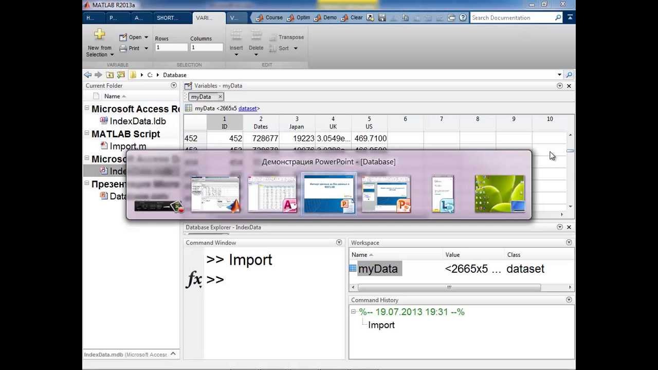 В ролике идет речь о взаимодействии MATLAB с базами данных. На примере переноса данных финансовых индикаторов из Microsoft Access в рабочую среду MATLAB,