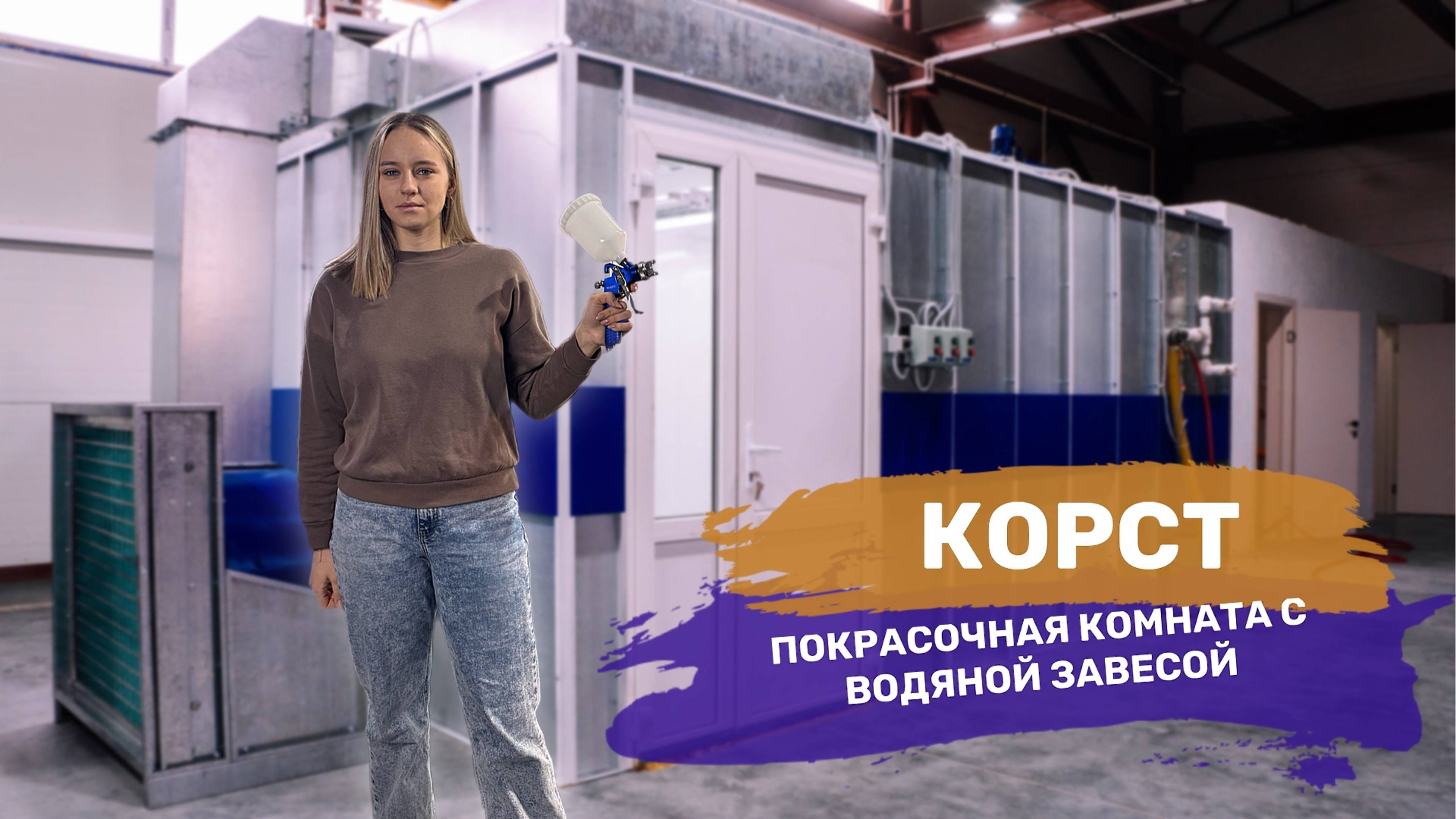 Покрасочная комната с водяной завесой, приточным пленумом и фильтром грубой очистки воздуха (ФГО)