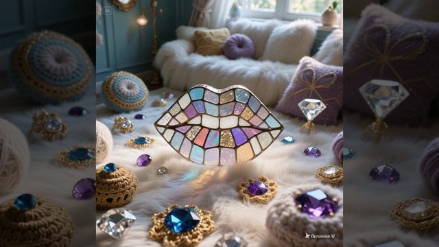 dreamina-2026-02-04-4237-полупрозрачные витражные губы в центре м...
