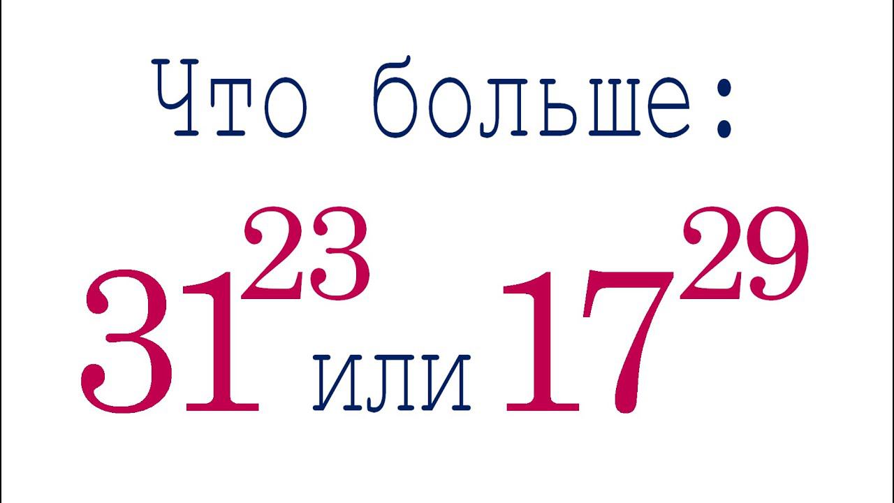 Что больше: 31^23 или 17^29? Telegram: https://t.me/volkov_telegram Мой Дзен: https://zen.yandex.ru/valeryvolkov Telegram 2: https://t.me/zhena_muzha_uchit Группа ВК: https://vk.com/volkovvalery Предыдущее видео: https://youtu.be/dhQcHhqchVU Valery Volkov https://www.youtube.com/valeryvolkov Семейный Дзен: https://zen.yandex.ru/rinaval @arinablog наш семейный канал https://www.youtube.com/channel/UCktJn2SW0NzKaLkdfsYqnrg Instagram: https://www.instagram.com/volkovege/ Twitter: https://twitter.com/volkovege Почта: uroki64@mail.ru Поддержать: http://donationalerts.ru/r/valeryvolkov