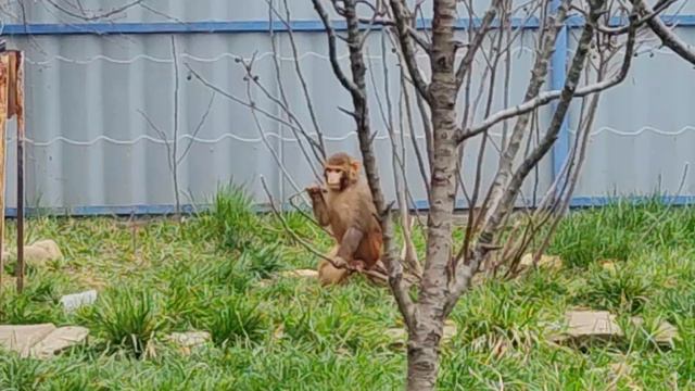 Обезьянки кушают песок и травку