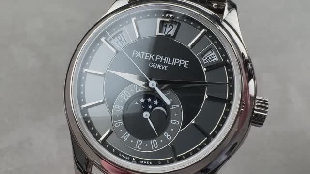 *видео переведено в Яндекс браузере Годовой календарь Patek Philippe Complications (5205G010) заключен в корпус 40 миллиметров из 18-каратного белого золота, с черно-серым циферблатом на черном ремешке из кожи аллигатора. Особенности этого годового календаря Patek Philippe Complications включают - часы, минуты, секунды, дату, годовой календарь, день, месяц и фазу луны. Эти часы имеют толщину 11,7 мм и 49,1 мм от наконечника до наконечника. *цена от 3.000.000 до 4.200.000 рублей на вторичном рынке. Для получения полной информации ознакомьтесь с обзором ежегодного календаря Patek Philippe Complications.