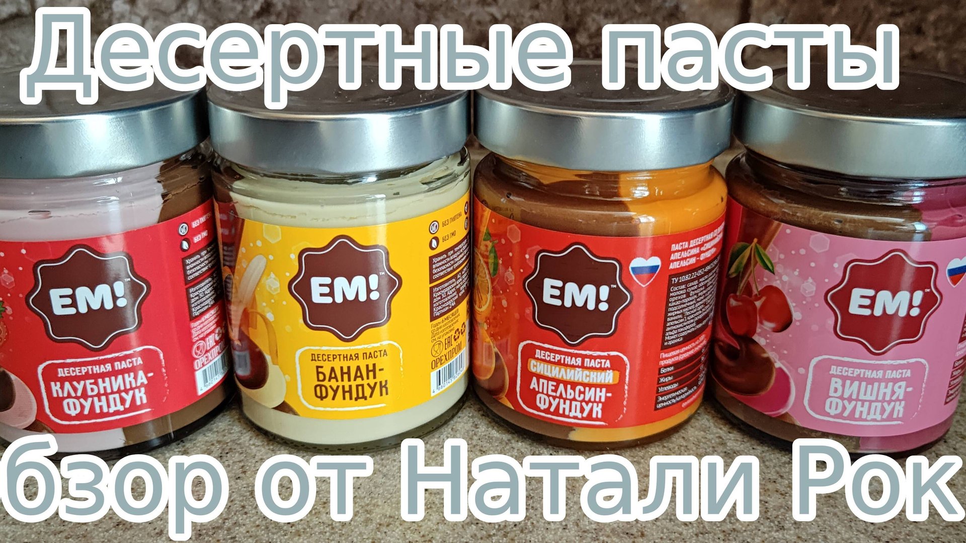 В составе обзора представлены следующие вкусы десертных паст марки "Ем!": - Клубника-фундук; - Банан-фундук; - Сицилийский апельсин-фундук; - Вишня-фундук. Мой канал в Дзен: https://dzen.ru/natalierock64 Мой канал в YouTube: https://www.youtube.com/c/НаталиРок