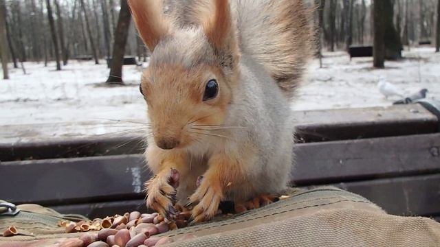 Дикая белка, которая даёт гладиться