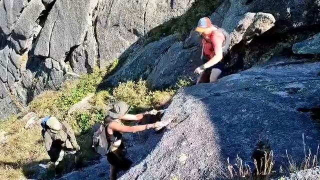 В горах.