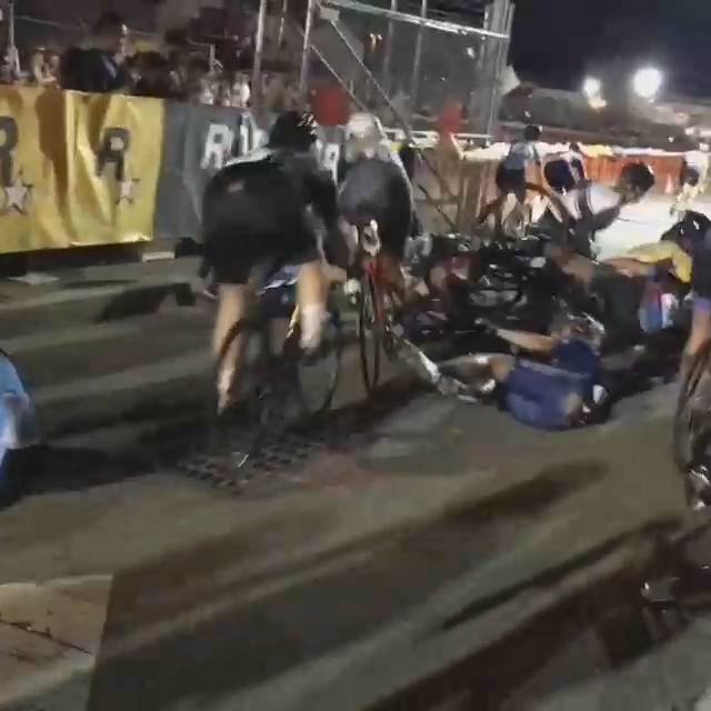 Очень частая проблема на велогонках - когда падает один велосипедист, тут же образуется целая гора из споткнувшихся об него других велосипедистов. #велосипедист #гонки #падение #фейл #прикол