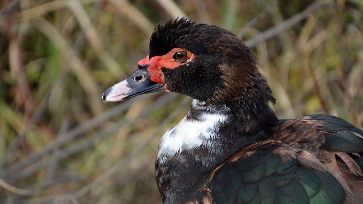 Мускусная утка на реке Исеть в Екатеринбурге. Непонятно, откуда она взялась.