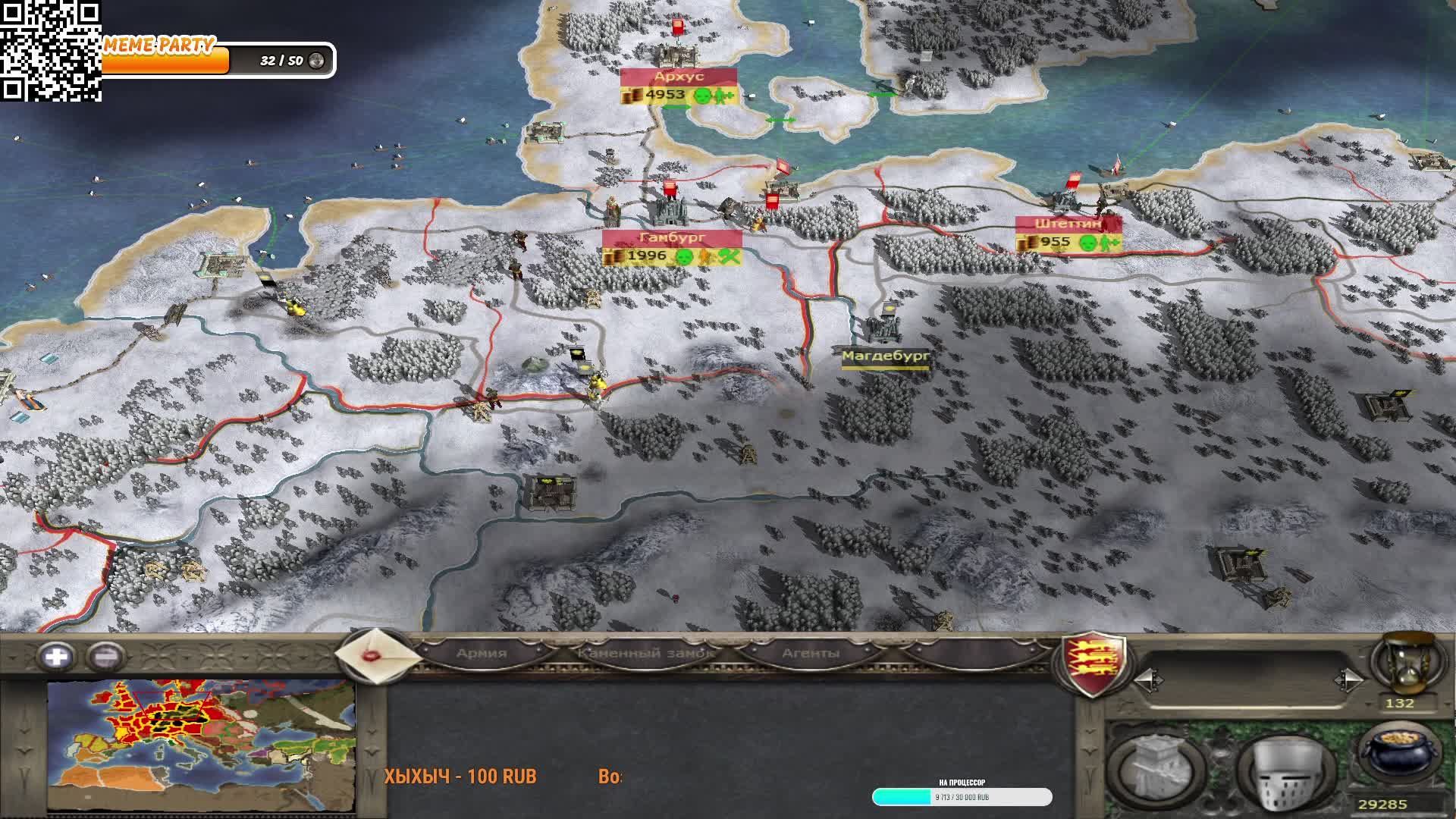 Medieval II: Total War Св. Римская Империя фактически уже окружена, осталось разгромить, но территорий ещё у них много и даст ли Папство добро? Так же ведём крестовый поход, будет ли он удачен?) Тем кто хочет поддержать стримера и канал - https://www.donationalerts.com/r/demonkoshak или по QR-коду в углу экрана)