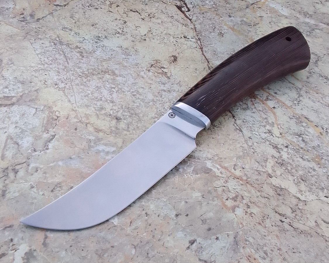 Представляем прекрасный кухонно-походный разделочный нож в персидском стиле. Очень удобный, практичный и эстетичный помощник в делах и в активном отдыхе. Пользуйтесь с удовольствием! Модель: Перс Монтаж: сквозной Клинок: 95х18 (твёрдость 58 HRC), спуски от обуха вогнутой линзой и далее режущая кромка Рукоять: венге Не является ХО, сертификат имеется, ножны в комплекте. Размеры в мм: Общая длина - 252 Длина-ширина-толщина клинка - 129-33-3,5 Длина-ширина-толщина рукояти – 123-32-23 ЦЕНА на момент публикации: 4200 р, + доставка (почта, СДЭК) ВНИМАНИЕ!! Если Вам понравилась модель ножа, но хочется его в каком-то другом (размеры, материалы, сложность) исполнении, обращайтесь – договоримся. По всем вопросам и заказу ножей обращайтесь: Олег Александрович Киршанов Тел/whatsapp +79202979792 (c 8 до 19 ч МСК) Вконтакте https://vk.com/nozheyaaar Ярмарка мастеров https://www.livemaster.ru/nozheyaaar Инстраграмм https://www.instagram.com/nozheyaaar/ НОЖЕЯР: хорошие ножи для хороших людей!!