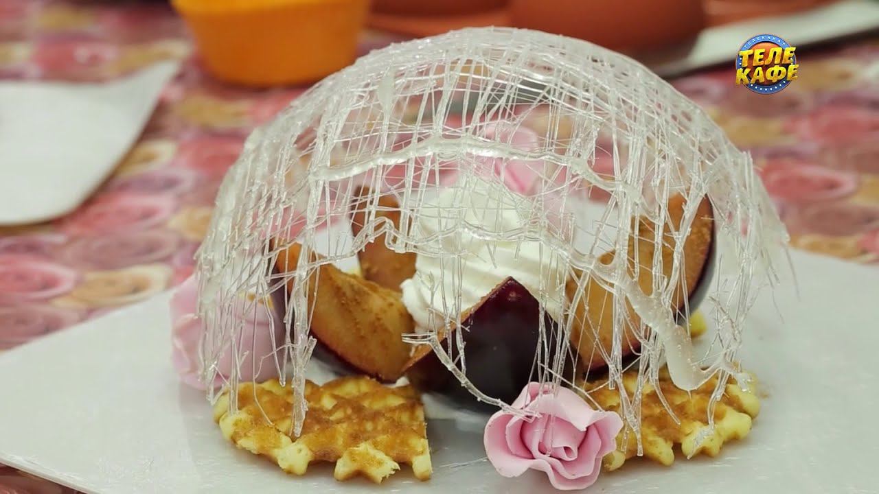 Кондитер Марина Синицкая приготовит сливочно-фруктовый десерт в форме цветка и накроет его хрустальным куполом из карамели.