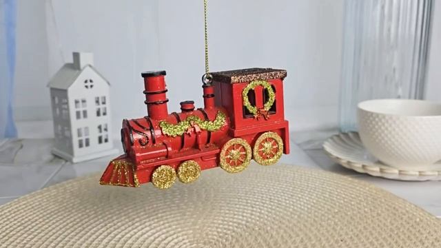 Елочное украшение НОВОГОДНИЙ ПАРОВОЗ, красный, пластик, 12 см, подвеска, H5580-красный
