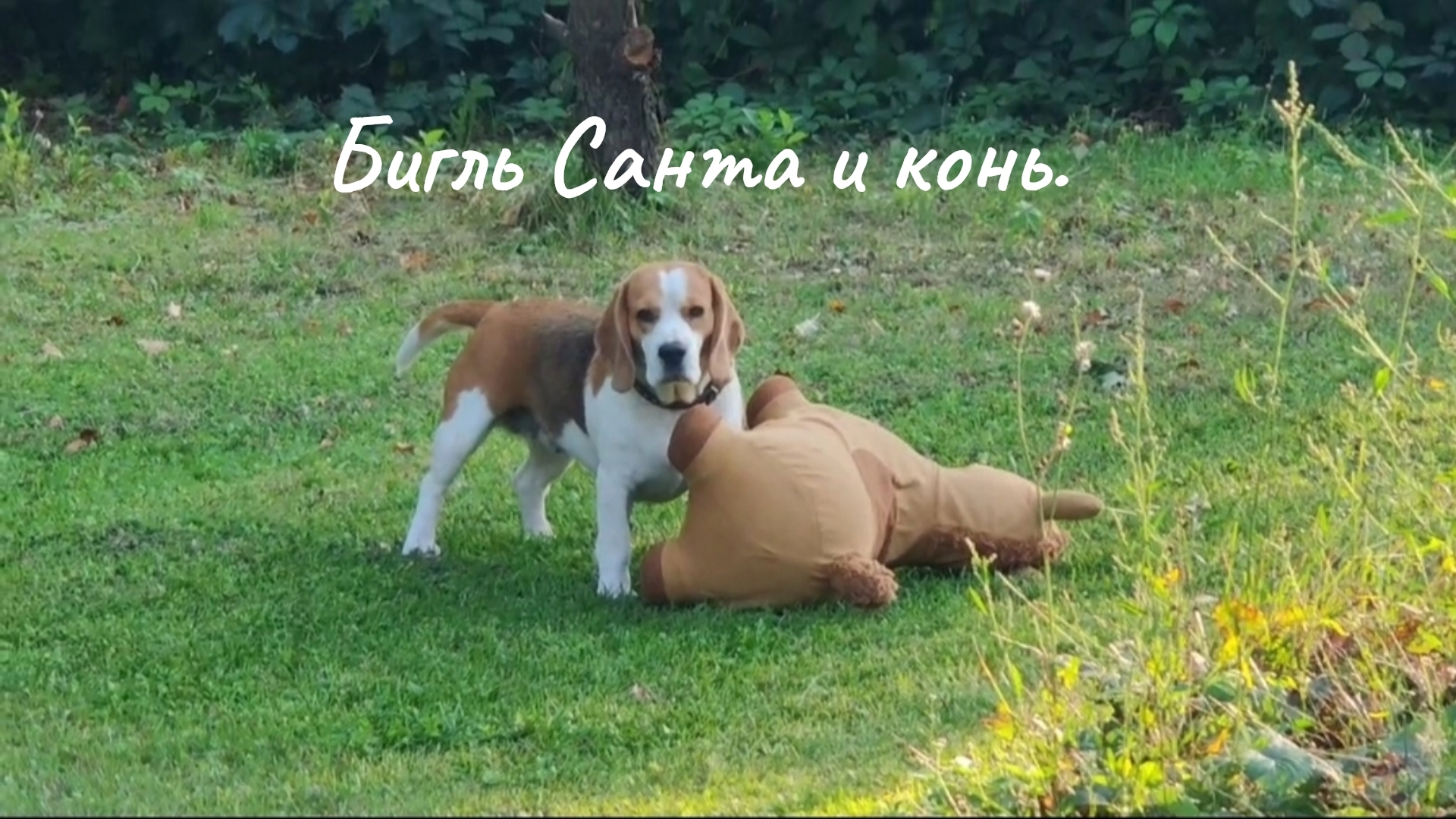 Бигль Санта и конь. 💘💘💘