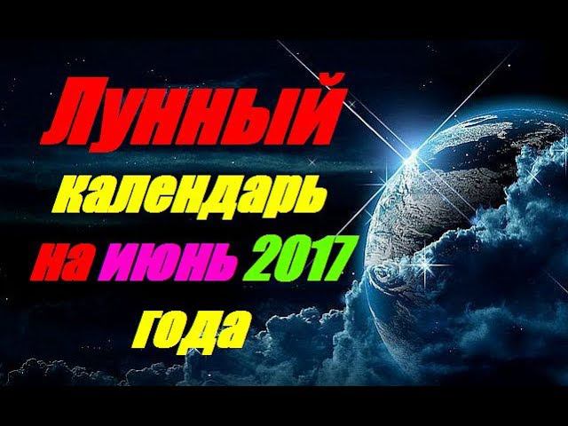 Лунный календарь на июнь 2017 года Для просмотра лунного календаря, используйте тайм код для знаков зодиака, расположенный ниже. 0:38 - 1-5 июня 3:41 - 6-10 июня 6:28 - 11-15 июня 9:05 - 16-20 июня 11:42 - 21-25 июня 14:19 - 26-30 июня 17:18 - Луна без курса.Холостая луна