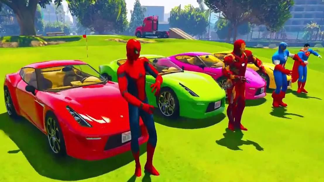 МУЛЬТИК про ЦВЕТНЫЕ МАШИНКИ и ГРУЗОВИК с Человеком-пауком и Супергероями для ДЕТЕЙ