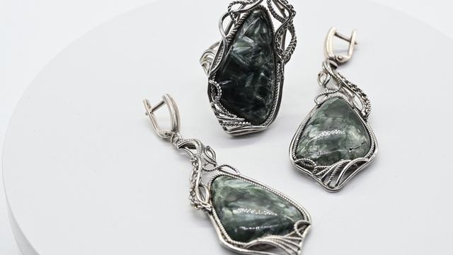 Кольцо и серьги серафинит, размер-18,5 ни119001