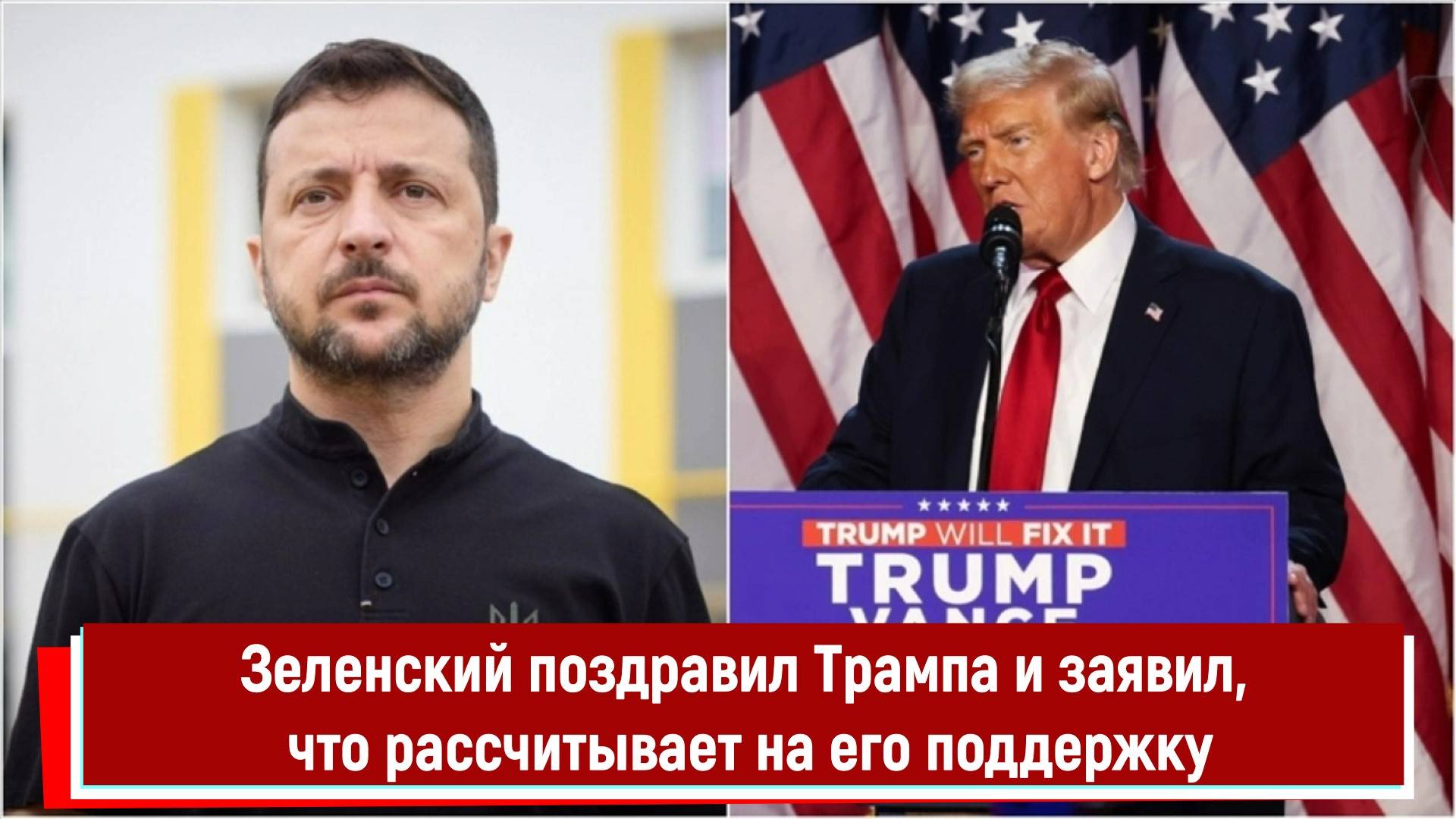 Зеленский поздравил Трампа и заявил, что рассчитывает на его поддержку РТ