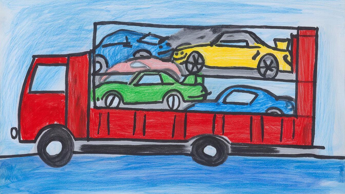 Автовоз перевозит спортивные машины. Развивающий мультфильм.
