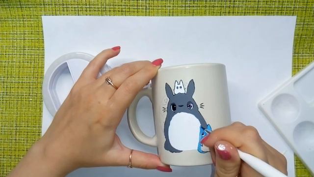 Процесс росписи кружки "Тоторо". Кружка с ручной росписью "Тоторо".