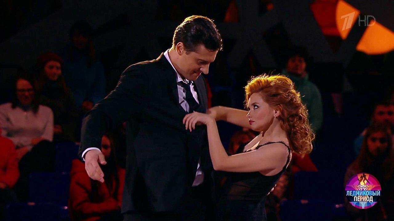 На льду – актриса Ольга Кузьмина и многократный призер чемпионатов мира и Европы Александр Энберт. Они танцуют под композицию из кинофильма «Девять».