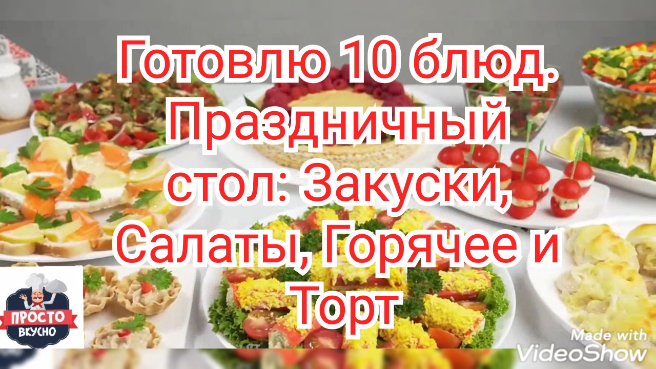 Рецепты. Готовлю 10 блюд. Праздничный стол: Закуски, Салаты, Горячее и Торт
