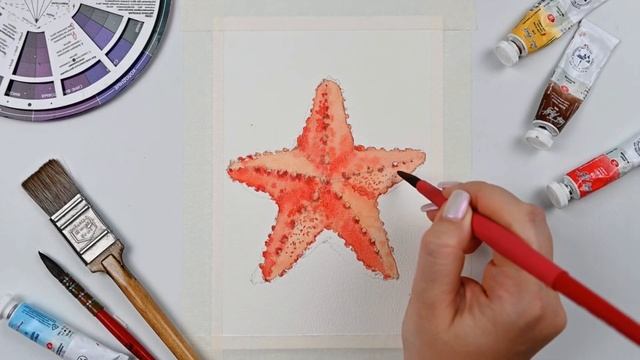 Рисуем морскую звезду. Уроки рисования. Акварель для н