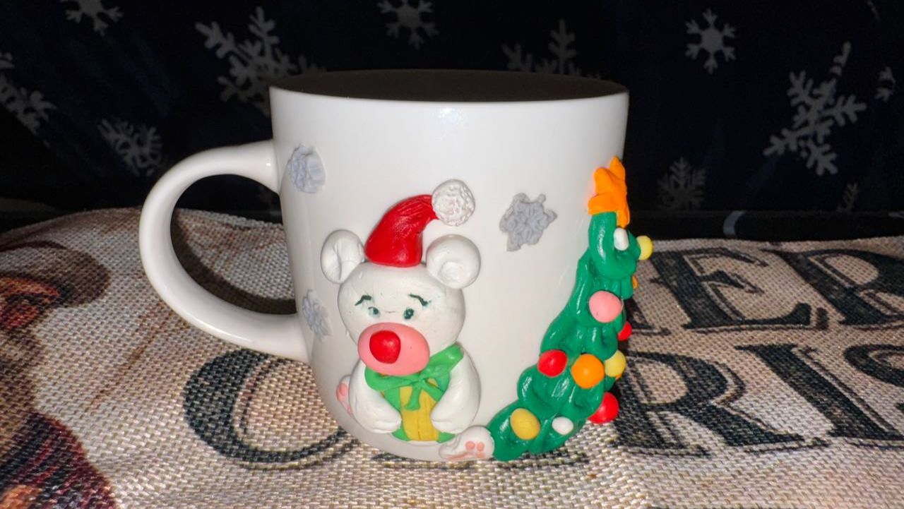 Украшение кружки полимерной глиной.