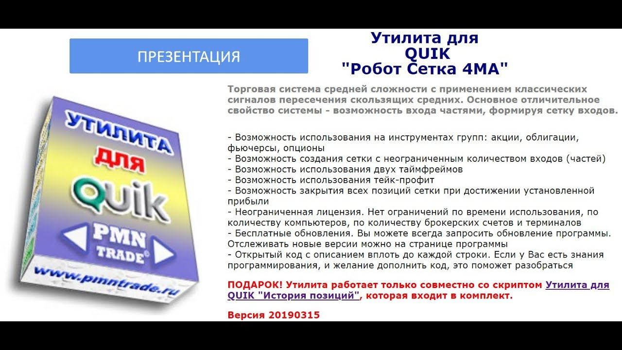 Утилита для QUIK "Робот Сетка 4MA". Презентация.