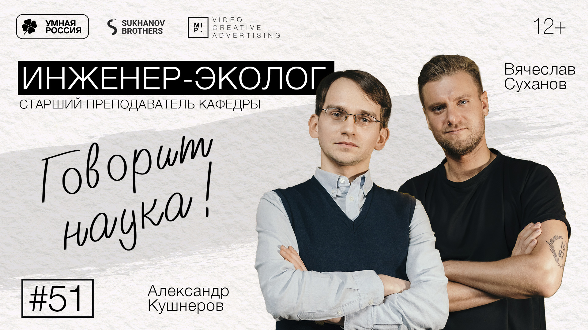 В гостях: Александр Кушнеров — старший преподаватель кафедры прикладной математики и информатики СПбГУПТД. Ведущий: Вячеслав Суханов — главный редактор журнала «Умная Россия». Обсуждаем контроль загрязняющих веществ. Составляем прогнозы. Привлекаем молодежь. Оцениваем прогресс науки. Разбираемся можно ли восстановить экосистему. Учимся предотвращать несанкционированные сбросы. Рисуем портрет современного ученого.