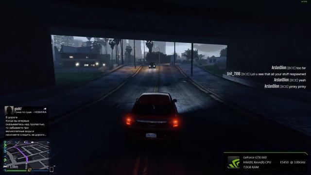 GTA Online тест fps. Лицензия Конфигурация системы: Процессор - Intel Xeon E5450(Q9650) - 3.6 GHz; Видеокарта - Inno3D GeForce GTX 660 2048MB GDDR5 ОЗУ - 7gb Материнка - Gigabyte ga-p35-ds3l Кулер - Zalman CNPS10X Optima БП: Q-dion QD500 (500W) Жесткий диски: SSD Kingston HyperX FURY 120gb WD blue 500gb Samsung 120 gb OS: Windows 10 Pro Видео записывал с помощью ShadowPlay GTA 5 Grand Theft Auto V