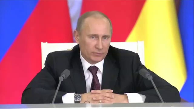 Владимир Путин на совместной пресс-конференции с Федеральным канцлером Германии Ангелой Меркель по итогам российско-германских межгосударственных консультаций. 16 ноября 2012 года, Москва, Кремль.