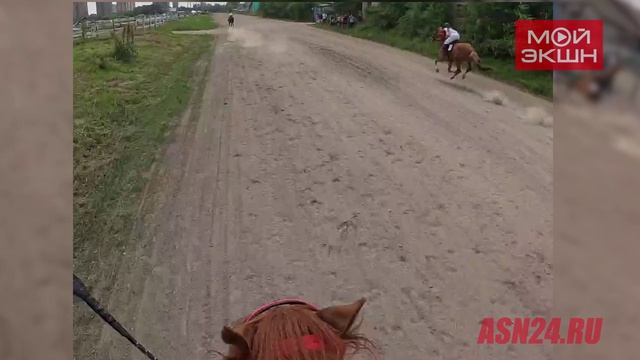 Падение жокея с лошади попало в кадр во время скачек на Благовещенском ипподроме