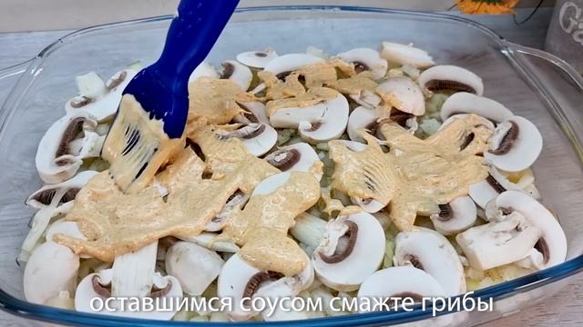 Здравствуйте, уважаемые подписчики и гости моего канала! Блюдо получается сочное и ароматное! С салатом очень вкусно. ✅Ингредиенты: ~ 4 картофелины; соль, растительное масло; хорошо перемешать; выложить картошку в форму для запекания; 1 лук; соль, перец; 7-9 грибов; выложить половину грибов; 3 куриные грудки; сделать поперечные разрезы; 150 г сметаны, 3 столовых ложки растительного масла, 1 столовая ложка горчицы; соль, перец, паприка; 1-2 зубчика чеснока; все хорошо перемешать; обильно смазать соусом куриное филе; использовать оставшиеся грибы; вставить в каждый разрез по небольшому слайсу сыра; оставшимся соусом смазать грибы; выложить куриные грудки в форму; выпекать ~ 40 минут при 200°С (можно накрыть фольгой); половина средней капусты; 1 средняя морковь; 1/2 сладкого перца; 1/2 луковицы; ~ 50 г растительного масла хорошо нагреть; 1/2 чайной ложки сахара, 1/2 чайной ложки соли, 1 чайная ложка бальзамического уксуса, 1/2 столовой ложки воды, 1 чайная ложка сухого чеснока, 1 чайная ложка копченой паприки; все хорошо размешать; вылить горячее масло и хорошо перемешать; Спасибо, что смотрите, комментируете и лайкаете мои видео! Приятного аппетита! Спасибо что, смотрите👀 мои видео! Если Вам не сложно, подпишитесь🔊 на мой канал. Если Вам понравилось видео, поставьте 👍 💘,сделайте репост;) Буду рад любому донату💲 на корм моему котику Василию 🐱😇🌹 Вам мелочь, а нам приятно.🌹