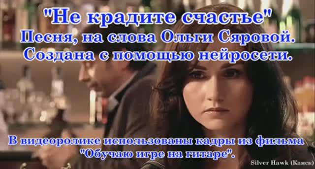 Песня, на слова Ольги Сяровой. Создана с помощью нейросети. В видеоролике использованы кадры из фильма "Обучаю игре на гитаре".