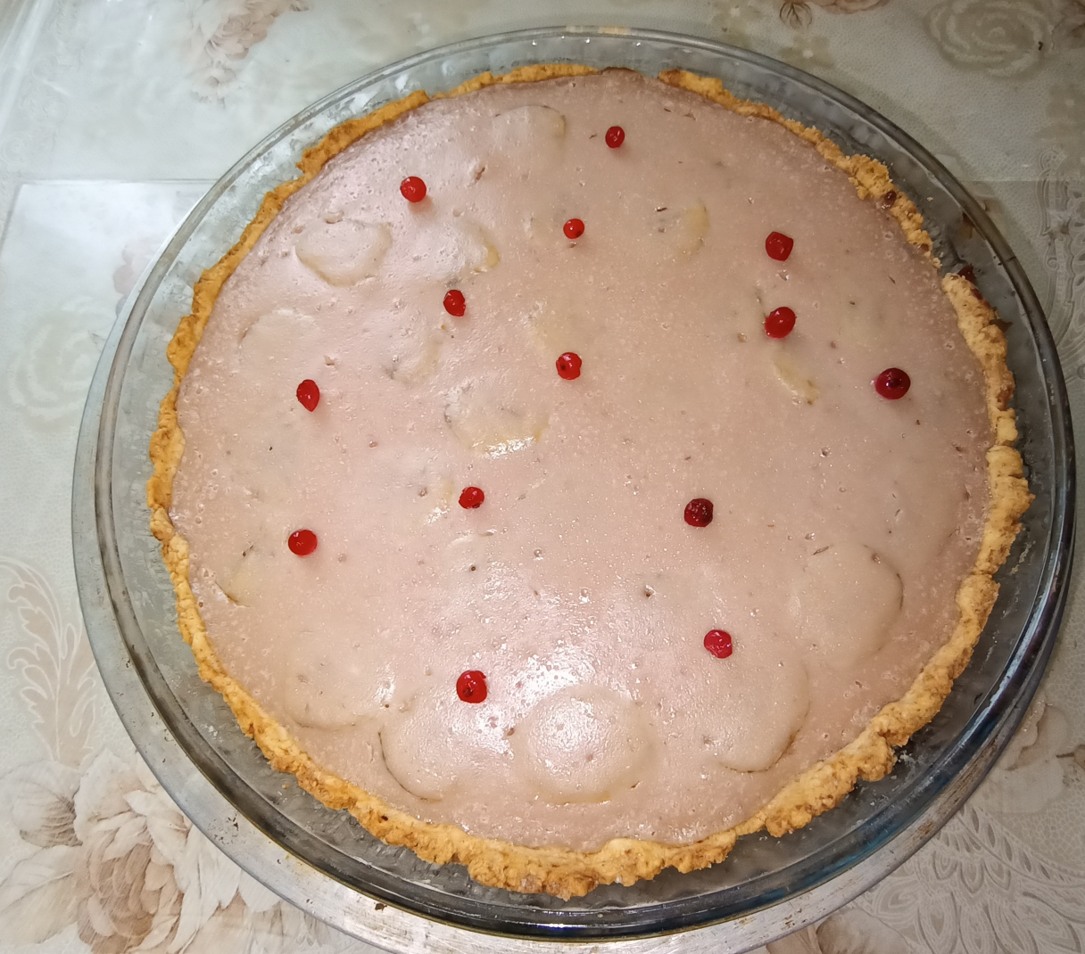 Банановый пирог с джемом и сметанной заливкой