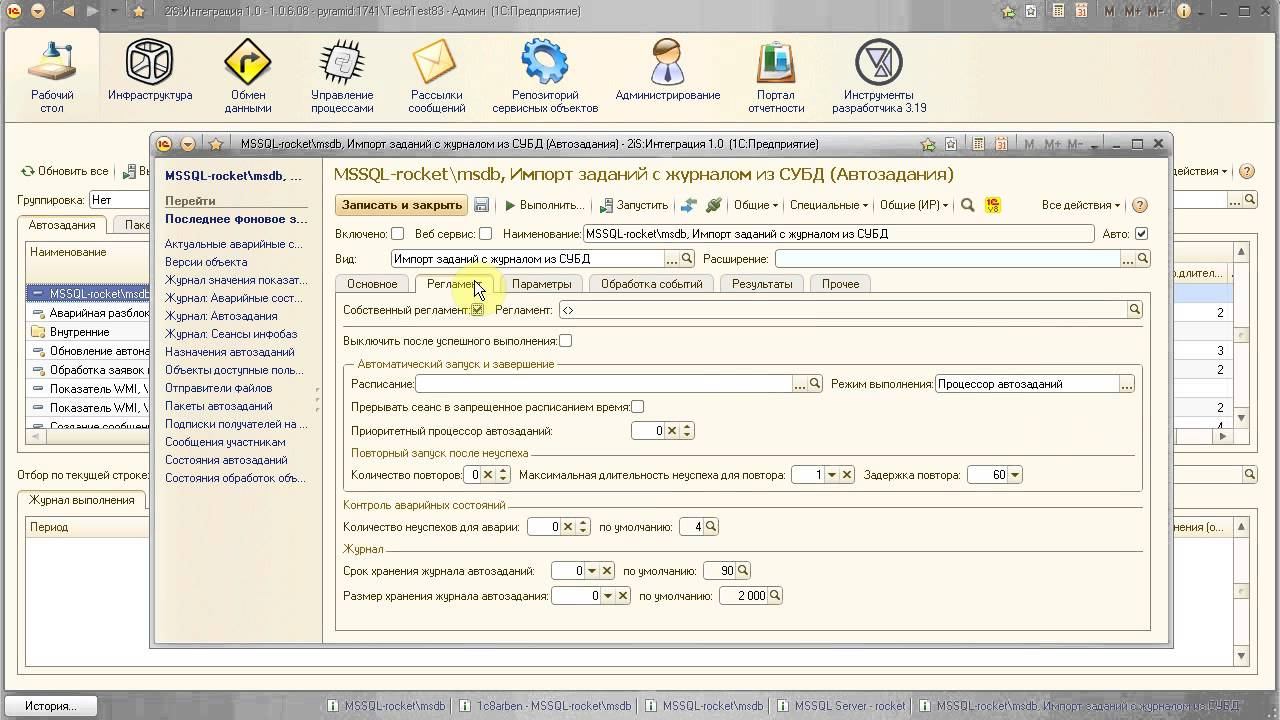 2iS:Интеграция. Импорт журнала регламентных заданий MSSQL