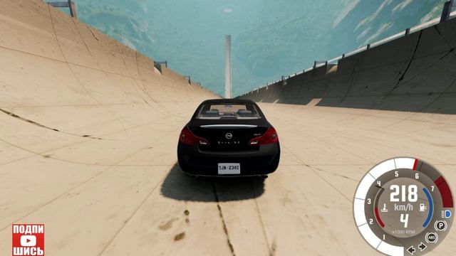 BeamNG Drive Спуск по рампе без тормозов на автомобиле! (Nissan Skyline 350GT) Мод патруль!
