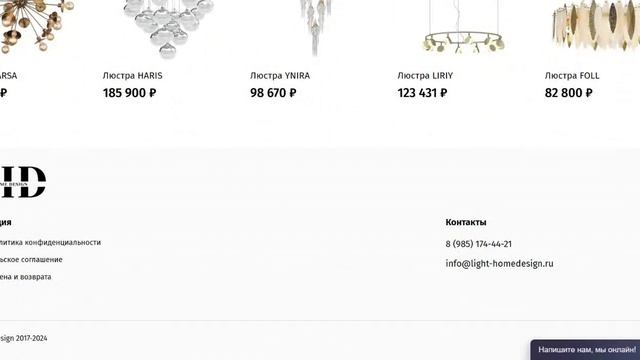 Внимание! Интернет-магазин Lighthomedesign (lighthomedesign.ru) это очередной лохотрон от украинских мошенников, на котором жулики предлагают осветительные приборы по заниженным ценам. Естественно это ловушка! Будьте осторожны, не ведитесь на такие сайты-однодневки как Lighthomedesign, покупайте товары в проверенных магазинах! Отслеживайте и пишите отзывы на новые лохотроны 👉 https://scam.moscow/ Мониторинг лохотронов 👉 Scam.Moscow