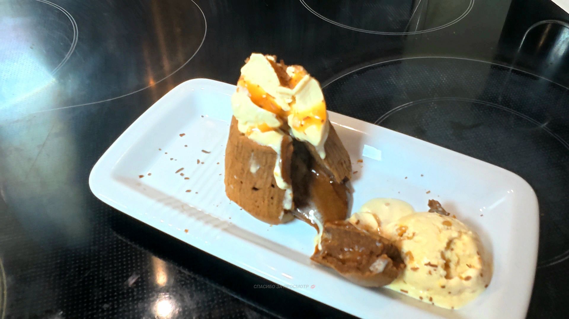 Подписывайтесь на мой канал в VK , на Rutube, Youtube! https://vkvideo.ru/@club_together_with_lena https://rutube.ru/channel/72195482 https://www.youtube.com/@AlenkaI_1 Всем привет! Добро пожаловать на мой канал) Сегодня приготовим быстрый горячий десерт Шоколадный фондан. Лава шоколадного удовольствия! Всего 15 минут и шикарный десерт готов! Духовку разогреваем до 180 градусов. Плитку тёмного шоколада, 85г, поломать на кусочки, положить в сотейник и добавить сливочное масло , 75 г, также порезанное на кусочки. Ставим сотейник на небольшой огонь и топим шоколад и масло. В это время в другой ёмкости взбиваем миксером 2 яйца, добавляем сахар( если вы берете тёмный горький шоколад- 80 г, если десертный хватит и 50г) и хорошенько выбиваем яйца с сахаром. За это время шоколад с маслом растопится , нужно их перемешать ложкой до однородной шоколадной массы. Теперь можно смешивать шоколадную и яичную массы. Есть 2 способа.1й более простой.) Можно понемногу добавлять шоколад в яйца и хорошо размешивать, постепенно повышая температуру яичной смеси. А можно, наоборот , понемногу добавлять яичную массу в шоколадную и каждый раз хорошо перемешивать, но, чтобы сделать правильно, предварительно надо 2-3 ложки шоколада вмешать в яйца, таким образом слегка прогрев яичную смесь, тогда не будет сильной разницы температур и яйца не сварятся))) После того, как смешали шоколадную и яичную массы вместе, нужно взбивать смесь миксером 3 минуты. Далее добавляем 75г муки и опять тщательно все вмешиваем в течение 2 минут. Выкладываем смесь в формочки, предварительно смазанные сливочным маслом( если они не антипригарные или силиконовые) Ставим в духовку. Выпекаем 7-10 минут. Очень важно не передержать в духовке!!! Это самый тонкий момент! Если формочки маленькие, не более 7-8 минут, покрупнее 8-9 до 10. Металлические формочки я держу 9-10 минут, а маленькие силиконовые 7,5. Многое зависит от вашей духовки, но принцип примерно такой. Нужно, чтобы пропеклись низ и бока, а верхушка в центре может быть слегка как будто недопеченной,т е. вы видите, что корочка десерта уже образовалась, но в центре под ней ещё как-будто не пропеклось.)) И лучше недодержать, чем передержать, потому что тогда будет просто кексик брауни со слегка влажным центром и уж если совсем передержали, простой шоколадный кекс. Если хотите, чтобы шоколад вытекал из фондана более интенсивно, добавьте в середину 1-2 кусочка шоколада, можно с начинкой, например с перцем чили, но это для ценителей сладости и остроты.)) Можно в центр положить пьяную вишню( без косточки, конечно))) Подавать надо сразу, горячим, в идеале с мороженным, которое будет таять и превращаться в соус. Желательно к десерту добавлять свежие ягоды с кислинкой(клубнику, малину) и украшать веточкой мяты. Когда ваши родные или гости ложкой или десертной вилочкой разламывают десерт из него вытекает горячая шоколадная лава.))Поэтому этот десерт ещё называют лава кейк. На гостей эффект вытекания шоколадной лавы из пирожного всегда производит впечатление.)) Приятного аппетита. Спасибо. Ставьте ❤👍 Подписывайтесь на мой канал ▶Вместе с Леной https://vkvideo.ru/@club_together_with_lena https://rutube.ru/channel/72195482 https://www.youtube.com/@AlenkaI_1 Пусть моя улыбка согреет ваши сердца💋