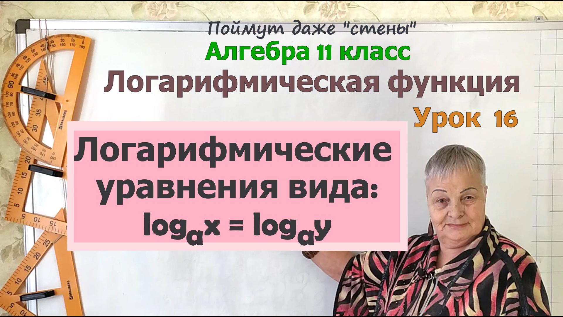 Алгебра 11 класс. Логарифмические уравнения. Сегодня мы разберём решение следующего вида логарифмических уравнений, когда log a x = log a y. То есть уравнений, в которых приравниваются логарифмы с одинаковым основанием. Мы покажем Вам решение двух уравнений с нахождениям ОДЗ (области допустимых значений) и проверку полученных корней уравнения без ОДЗ. Обратим Ваше внимание на характерную ошибку, которую допускают ученики при проверке корней логарифмического уравнения. 00:00 Начало видео. 00:36 Уравнение а). 05:05 Уравнение б). 05:10 Решение через ОДЗ. 14:28 Решение с проверкой. 19:34 Подводим итоги. Рекомендуем посмотреть следующие видео: Простейшие логарифмические уравнения. Алгебра 11 класс https://rutube.ru/video/e667a9979f5275831c0325a1b773d27c/ #логарифмическиеуравнения #МатематикаОтБаканчиковой Алгебра 11 класс, логарифмические уравнения
