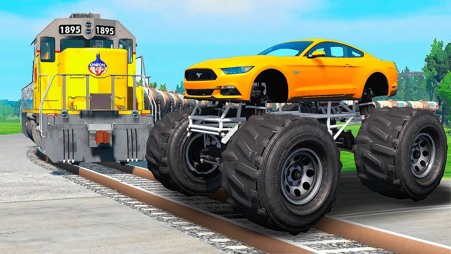 ПРОЕХАЛ РЕЛЬСЫ на ГИГАНТСКОМ ФОРД МУСТАНГ в ГТА 5 МОДЫ - ЭКСПЕРИМЕНТЫ в GTA 5 MODS