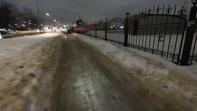 By bike in winter.