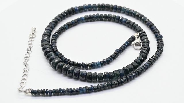 •Сапфир поделочного качества - корунд синий. •Не является ювелирным. •Длина бус 48см + 5см цепочка – удлинитель. •Размер бусин от 3*2мм до 7*4мм. •При заказе Вы покупаете бусы, которые представлены на фотографии.