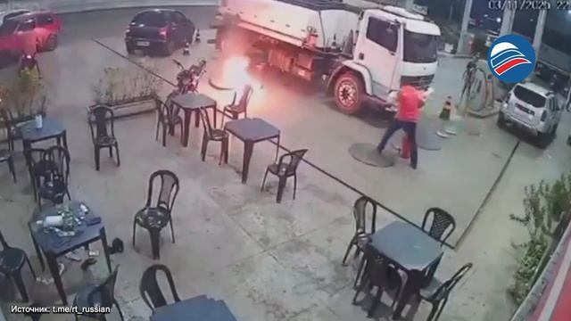 На АЗС в Бразилии вспыхнул огонь после того, как мужчина бросил спичку