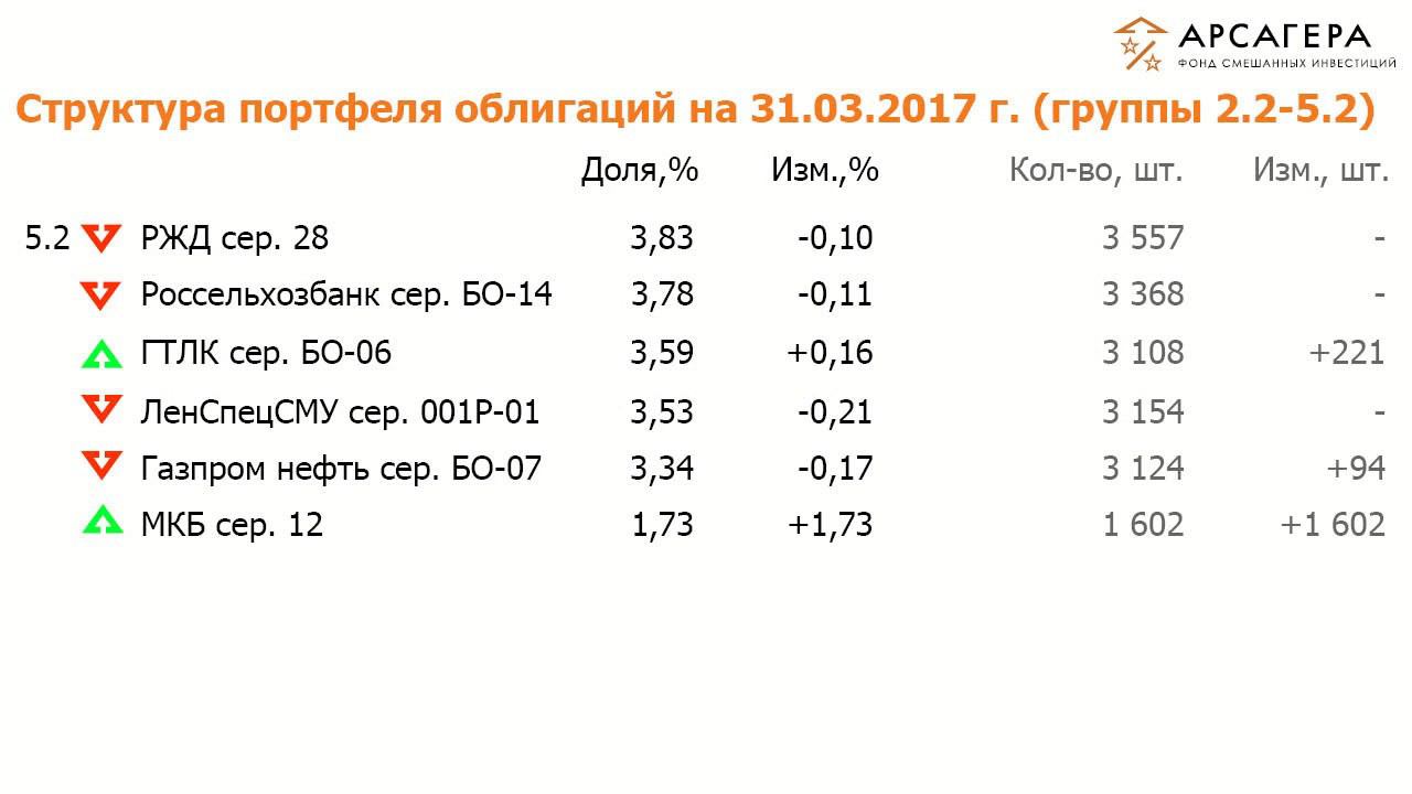 Наши фонды. ОПИФСИ «Арсагера - фонд смешанных инвестиций» с 17.03 по 31.03.17