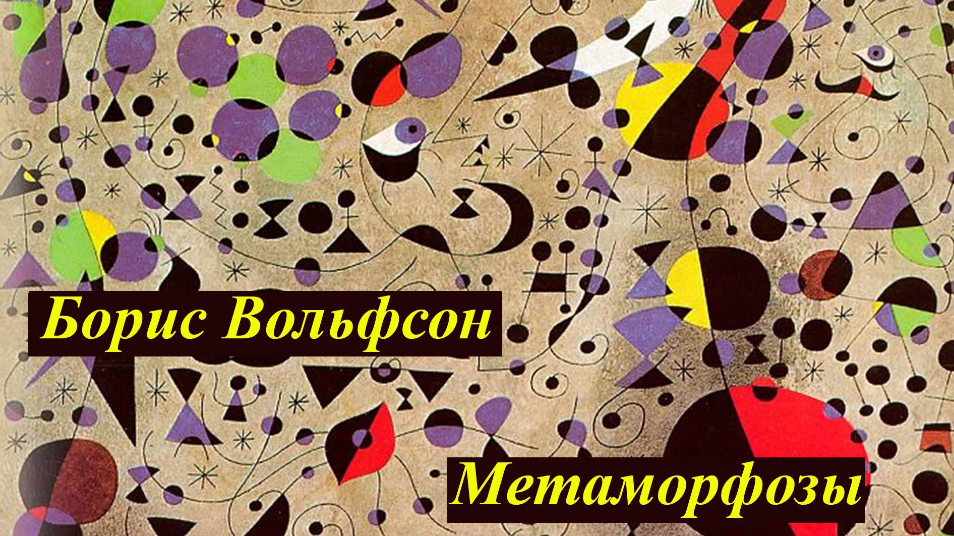 Поэт Борис Вольфсон читает свое стихотворение "Метаморфозы".Музыка Г.Канчели Художник Д.Миро.Видеосьемка, монтаж фильма Владимира Новоженина.