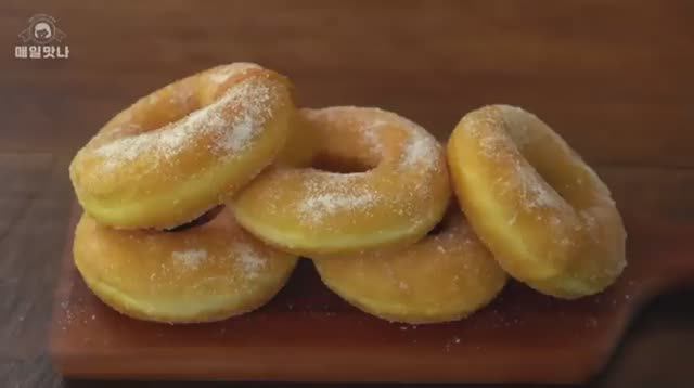 [диаметр 8~9 см, 10 штук] ✤ Тесто - 300 г хлебопекарной муки - 140 мл теплого молока - 5 г (0,8 ст. л.) быстрорастворимых сухих дрожжей - 45 г (4,5 ст. л.) сахара - 52г, 1 яйцо комнатной температуры - 5 г (1,5 чайной ложки) соли - 40 г несоленого сливочного масла комнатной температуры ✤ Наполнение - шоколадный джем или нутелла ✤ Покрытие - Сахар ✤ СОВЕТ - После первого обжаривания, для второго обжаривания выключите плиту на некоторое время и дайте маслу остыть перед повторным обжариванием. (Пончики нужно жарить при низкой температуре, чтобы они полностью приготовились.) - Можно просто сделать без начинки, намазать вареньем и съесть.